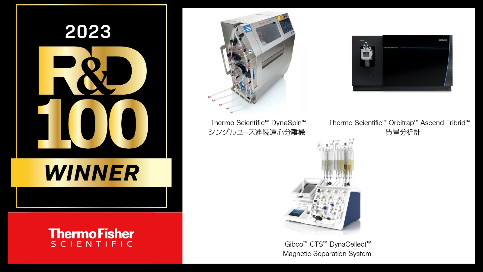 米国マサチューセッツ州ウォルサム(米国現地時間2023年9月8日) - サーモフィッシャーサイエンティフィック(以下、サーモフィッシャー)は、世界の科学技術における革新的な100の製品を表彰するR&D 100アワードにおいて、バイオプロダクションや低分子分析など、さまざまなライフサイエンス分野の研究者や科学者の研究を支援するために開発した、3つの革新的な技術が表彰されたことを発表しました。