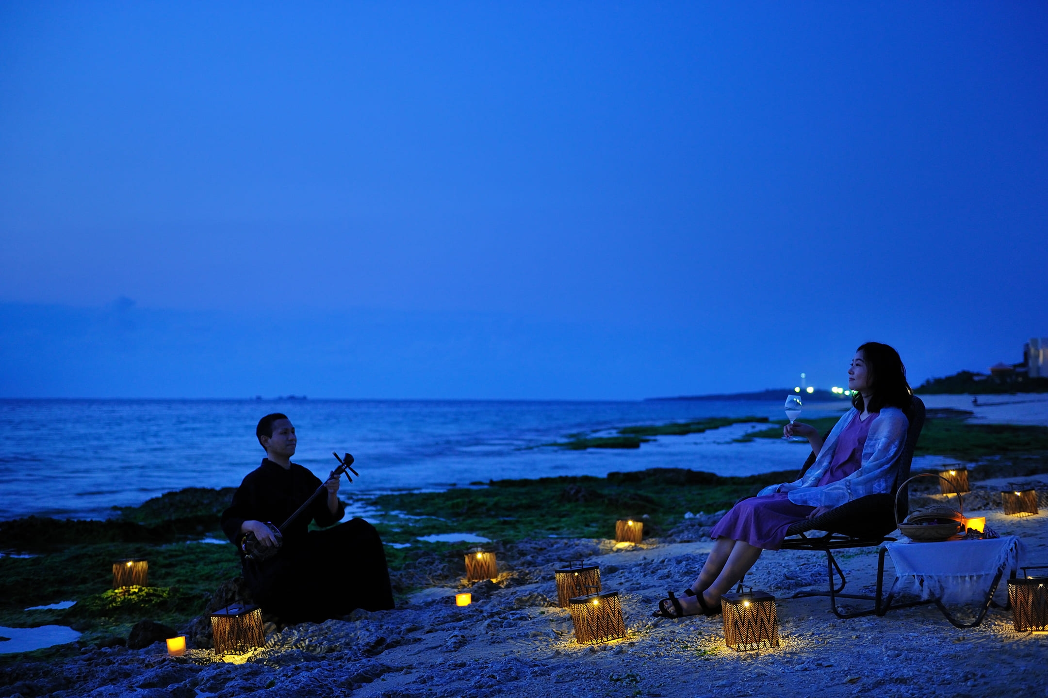 含まれるもの:三線の演奏を聴きながら楽しむ浜辺の晩酌、朝食2回、夕食1回、