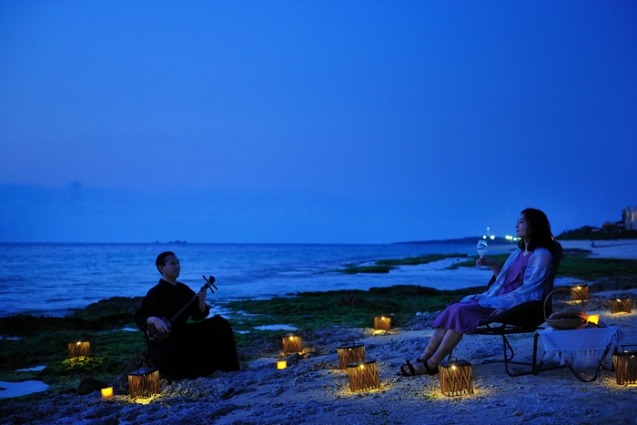 20:30 三線の演奏を聴きながら楽しむ浜辺の晩酌