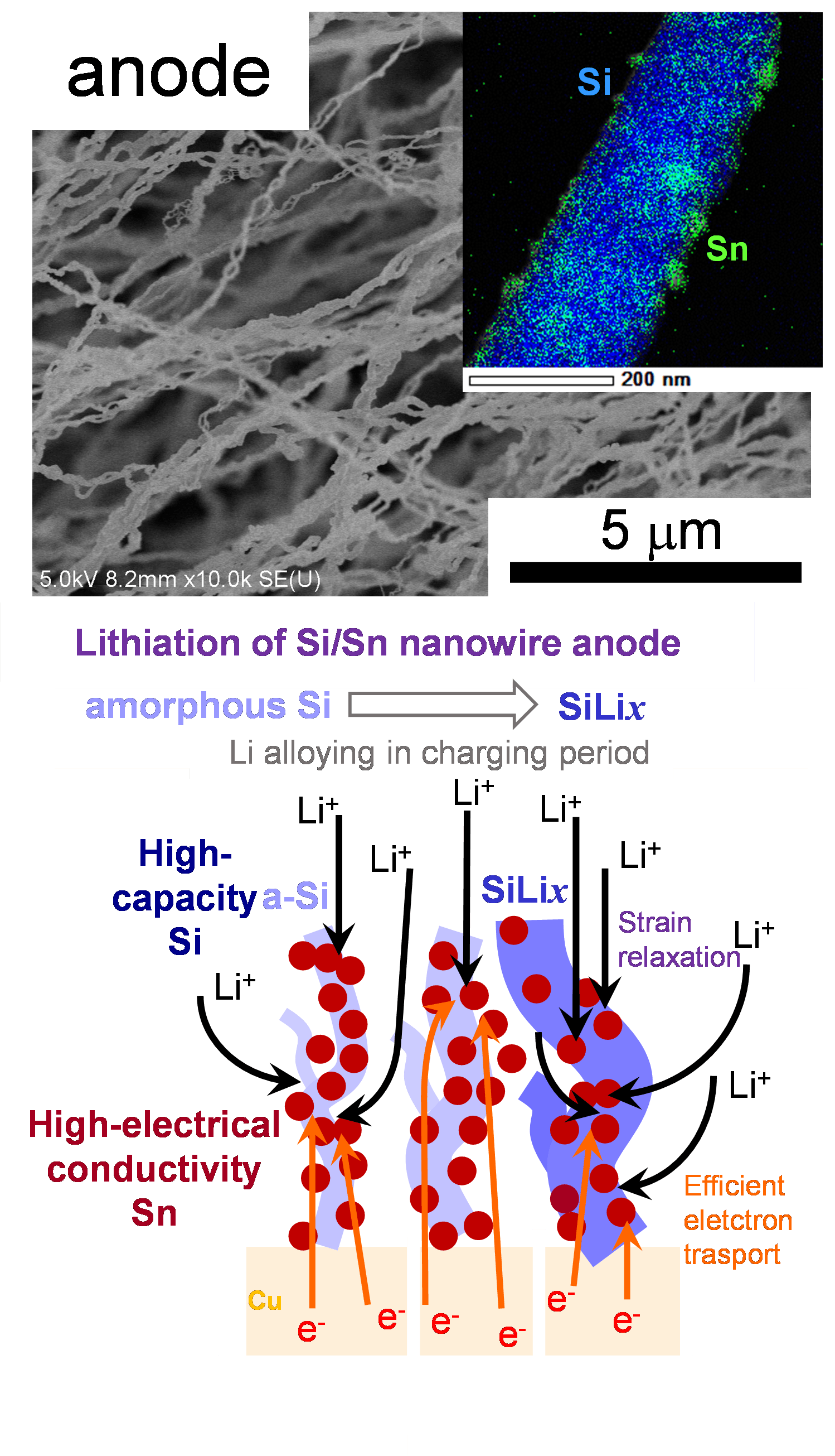 タイトル: Single-step fabrication of fibrous Si/Sn composite nanowire anodes by high-pressure He plasma sputtering for high-capacity Li-ion batteries