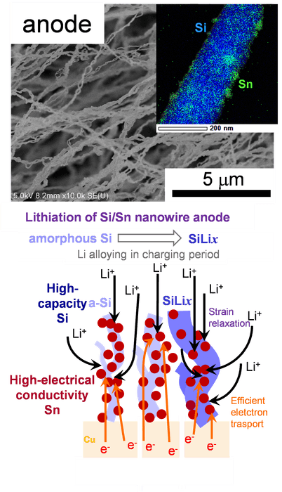 【名城大学】全固体リチウムイオン電池材料の展開に期待 低温プラズマプロセスで1次元Si/Snナノ材料負極の シングルステップ作製に成功 ~高容量Liイオン電池を実証~