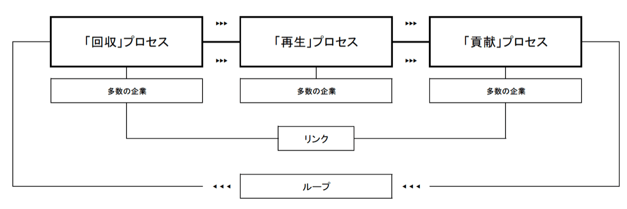 再素材化した素材を多数の企業で協力して使用して貢献する。