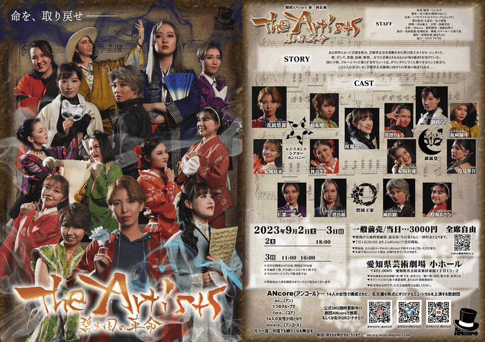 私たちは名古屋でオリジナルミュージカルを公演する社会人歌劇団、劇団ANcore(アンコール)です。