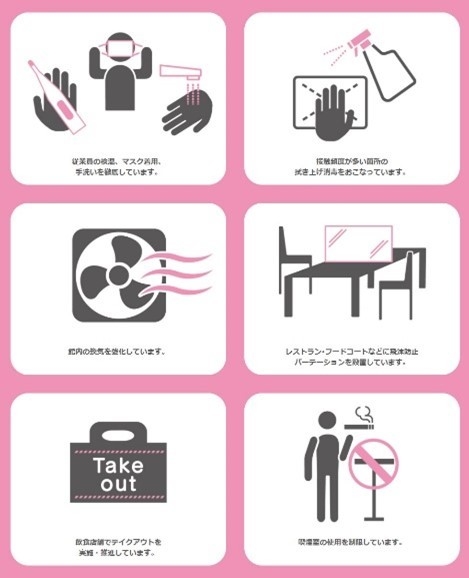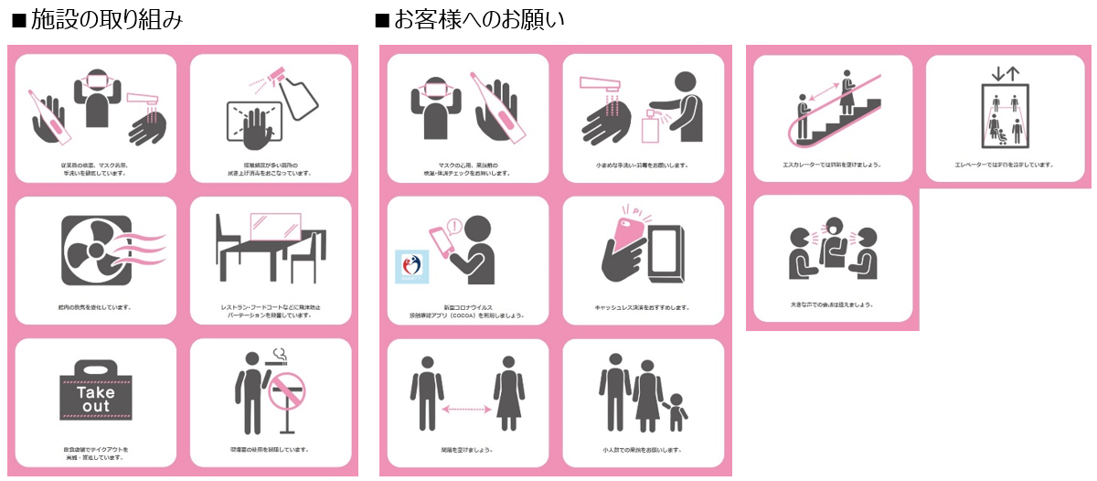 三井不動産グループが運営する商業施設では、新型コロナウイルス感染拡大防止のため下記をはじめとした