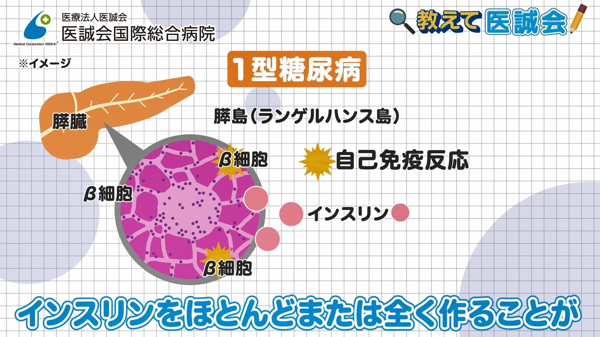 この動画は、1型糖尿病と2型糖尿病の違いや発症メカニズムについて、医誠会国際総合病院の糖尿病専門医が分かりやすく監修した動画となっています。