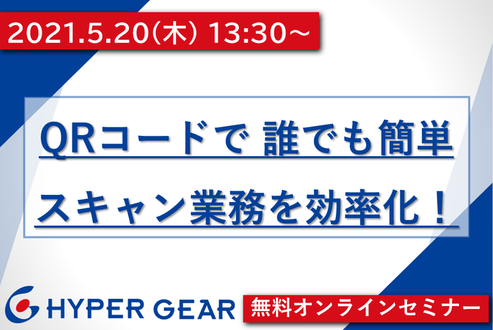 株式会社ハイパーギア(本社:埼玉県さいたま市、代表取締役社長:本田 克己)は、「QRコードで、誰でも簡単、スキャン業務を効率化!」と題した無料オンラインセミナーを2021年5月20日(木)13:30より開催します。