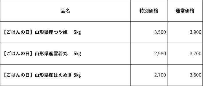 このイベントは、「小さなYAMAGATAマルシェ」が独自で制定した“にこにこ「ごはんの日」”に限り、対象の山形県産のお米を最大25%の割引価格で販売するイベントです。お米を通常よりもお得に・気軽にネットショップで購入していただき、消費拡大をはかるのが狙いです。山形県の主要3品種のお米「つや姫」「雪若丸」「はえぬき」が対象となり、「つや姫」は外観・食味・香り全てが高水準のお米、「雪若丸」は粘りと硬さが新食感のお米、「はえぬき」は食べ飽きないバランスがとれたお米です。