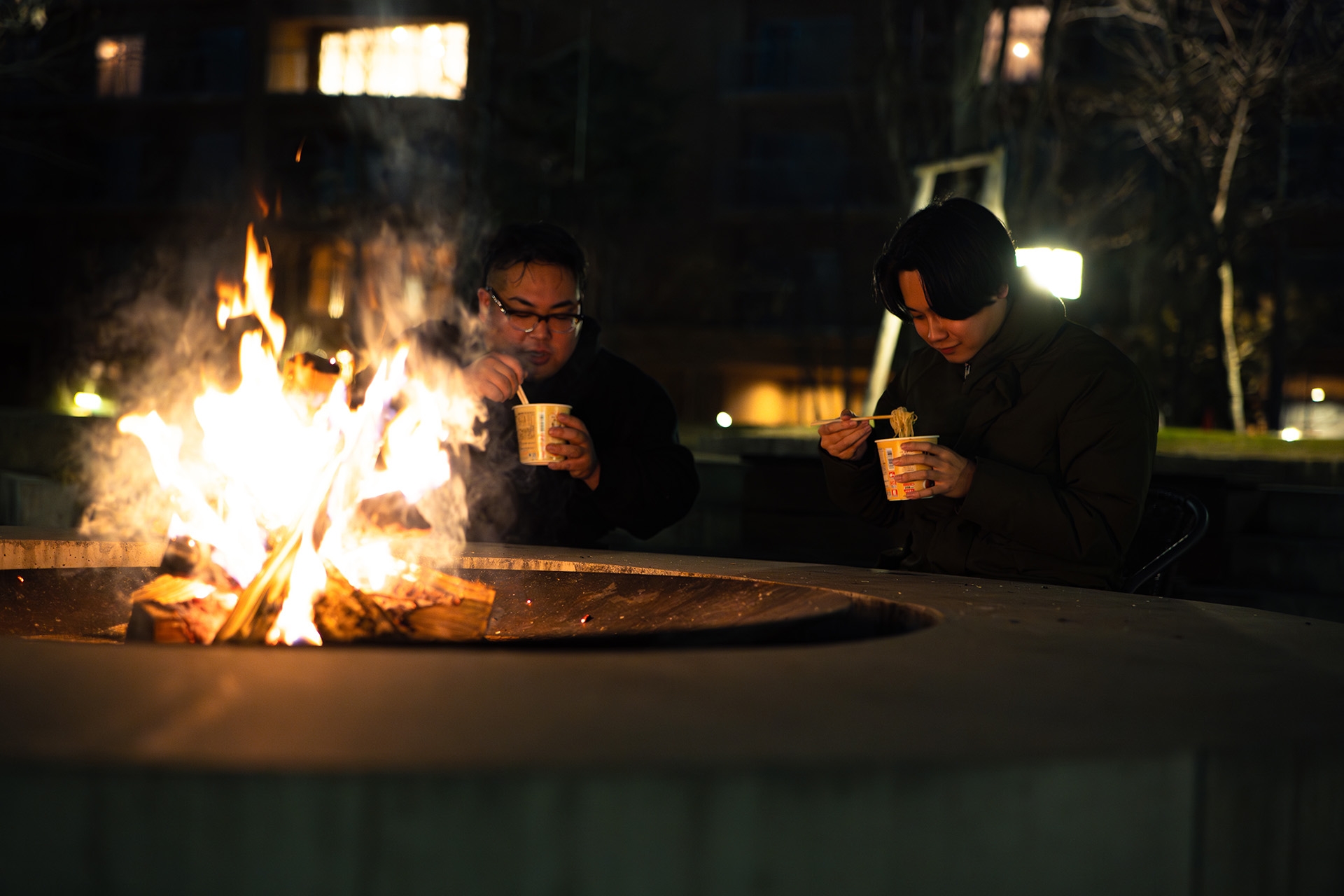 寒い季節の夜には、ガーデン内の焚き火を囲みながら、温かいヴィーガンヌードルをお召し上がりいただくひとときはいかがでしょうか。静かな夜の空気と揺れる炎の中で味わう一杯は、心も体もほっと温まります。