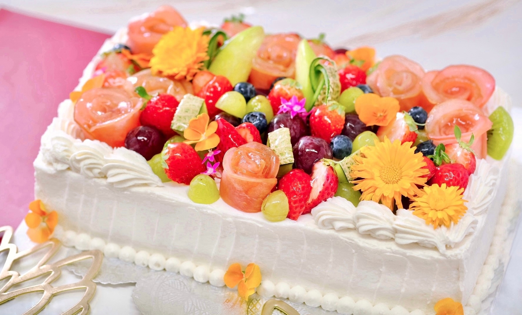 歓送迎会や忘年会、結婚式二次会のウエディングケーキなど、大切な人と過ごす特別な時間を、華やかに演出いたします。皆さまの心に響く幸せや感動をお届けできるよう、一つひとつお作りした大型のヴィーガン・グルテンフリーケーキです。