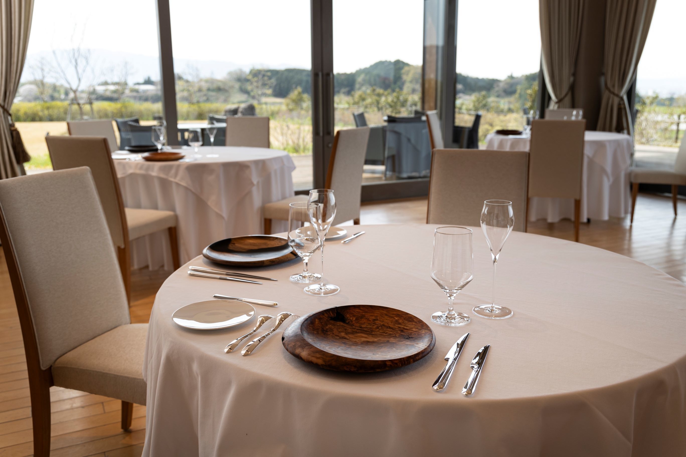 AUBERGE de SENVIEのレストランでは、「ロブマイヤー」「ザルト」「リーデル」のワイングラス、カトラリーは「クリストフル」など、厳選した世界的高級メーカーのアイテムを多数採用しております。これは、訪れるゲストに優雅で上質な時間を過ごしていただきたいということはもちろんですが、オーベルジュ実習を経験する大学生たちに早くから世界最高品質に触れてもらうことで、丁寧な取り扱いの方法を習得し、食の時間を彩る食器類一つ一つへの尊敬の気持ちを培ってほしいという願いがあります。