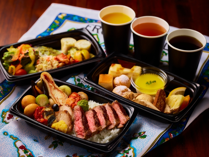 お部屋で気兼ねなく楽しみたい方や小さな方にオススメのテイクアウトボックスをご用意。