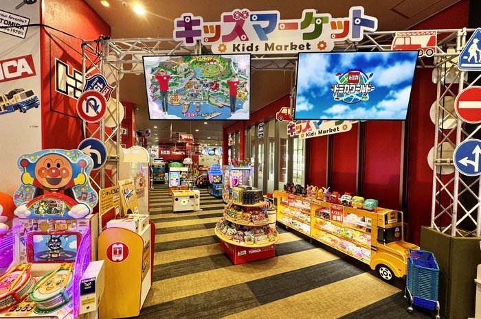 また、店内の一角に新たに設けた「トミカ」とのコラボレーションによる「キッズマーケット」は、お子さまがゲームで遊んだポイントでお買い物体験をしていただけると同時に、世代を超えて愛される「トミカ」の世界に没入できるコーナーとなっております。