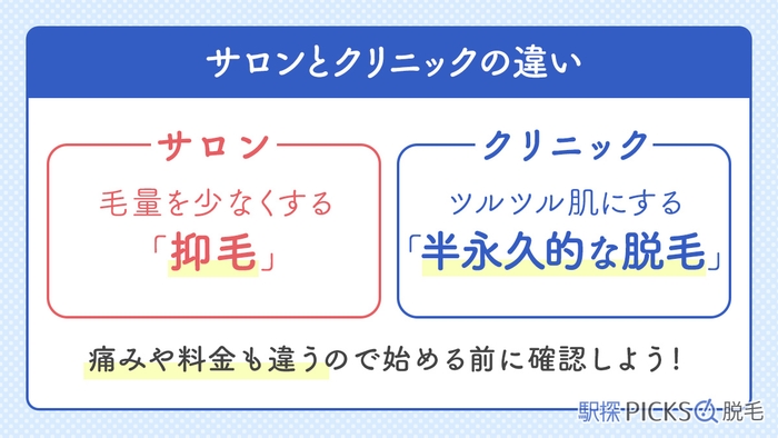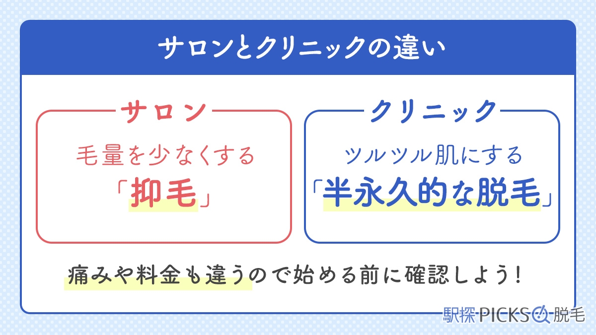 同じ脱毛でも、サロンとクリニックではそれぞれ特徴が異なります。