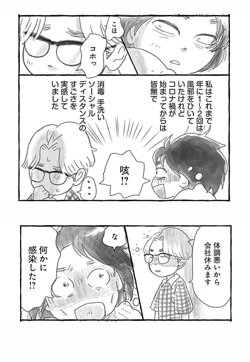 40代半ばのまんが家・林 晴々。これまで入院や手術の経験はなく、まあまあ元気に生きてきました。だけど、その“まあまあ元気”が、やすやすと打ち砕かれる出来事が…! 2021年7月、新型コロナウイルスに夫婦そろって感染していることが判明して―!?