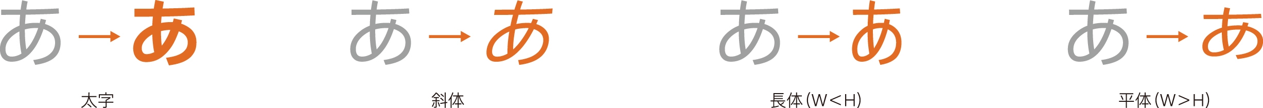装飾機能:太字、斜体、長体、平体