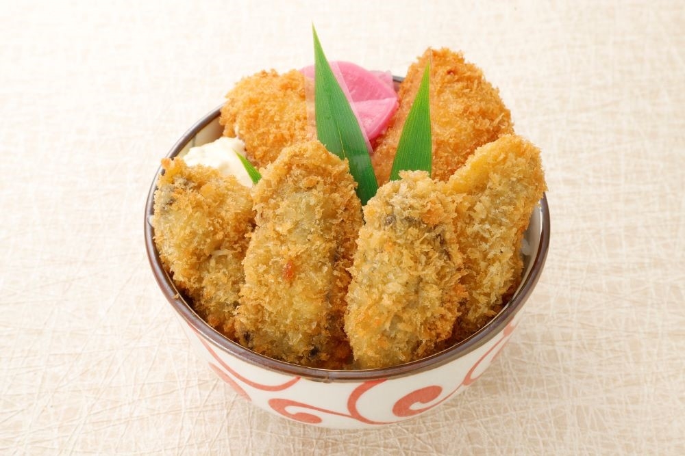 ②能登半島地震復興応援として能登産牡蠣フライとふぐ天ぷらの記念丼ぶりや輪島朝市弁当を