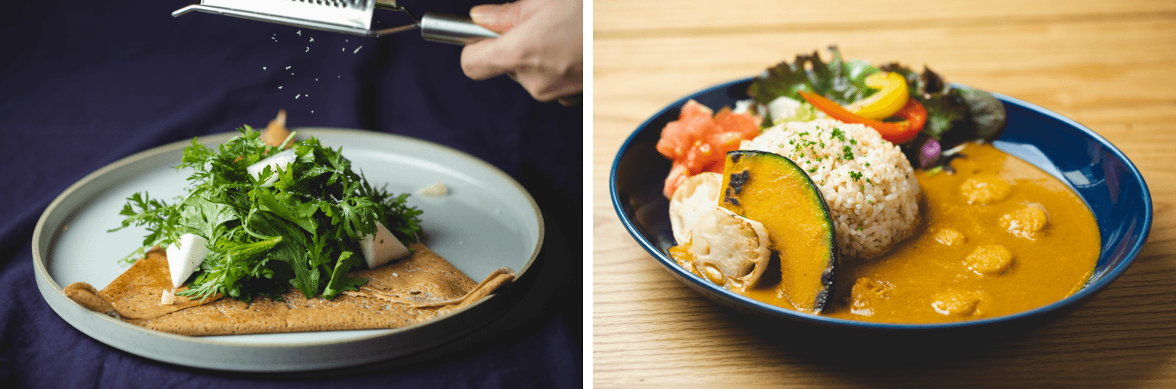 佐久穂町では移住者が増加する一方、pottaがオープンした2022年春には人々が実際に交流できる場がまだまだ少ない現状がありました。カフェ「potta」では看板メニューであるガレットに佐久穂町産のそば粉や、交流のある生産者が育てた野菜やフルーツを使用するなど、地域との関わりと四季を大切に、メニューを提供しています。また、店内にキッズスペースを設け、子育て世代の方にも集いやすい空間作りをおこなうなど、佐久穂町で生まれ育った方と移住者の方が混ざり合い、共に町を創造していく一つの拠点となることを目標としています。