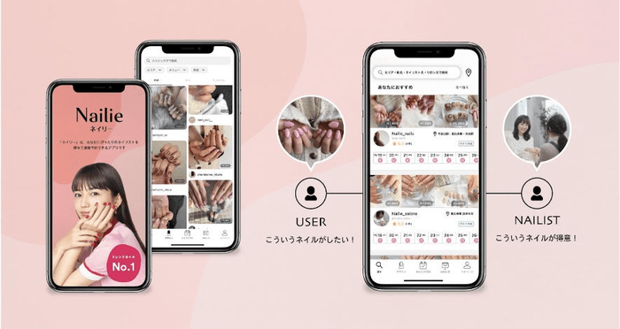 Nailieは、ネイリストが投稿したネイル画像からデザインを探し、気に入ったネイリストに直接予約できるネイル予約アプリです。事前にクレジットカードを登録することでアプリ内で簡単に予約から決済まで完結することができます。累計アプリダウンロード数は100万を突破、首都圏を中心に全国のネイリスト17,000人以上の方にご登録いただいております。