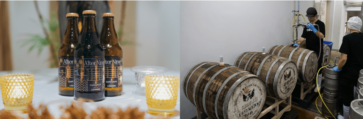 2023年、クロナキルティ蒸溜所がウイスキーのカスクフィニッシュに使用したラム樽を、COEDOが受け継ぎ、地元・川越産のサツマイモ「紅赤(べにあか)」を用いたストロングアンバーエールをベースに、約1.5ヶ月間熟成。このバレルエイジドビールは、「After Nine(アフターナイン)」として限定発売されました。