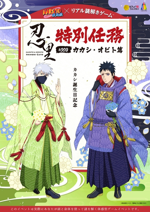 TVアニメ「NARUTO-ナルト- 疾風伝」のバースデースペシャル企画!好評につき第2弾。誕生日キャラ×リアル謎解きゲーム!8月はカカシ・オビト、ニジゲンノモリ忍里で8月21日(土)から