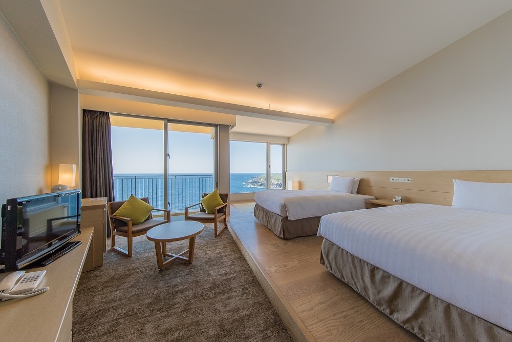 雄大なモッチョム岳を背に、東シナ海から太平洋へと続く大海原が目の前に広がるホテル屋久島では、部屋の中からでも屋久島の雄大な眺望と自然に触れることができます。1階の天然温泉では、海面が美しく煌めくパノラマビューと、まるで美容液のような水質を楽しむことができ、ご宿泊のお客様からはもちろん、地元の方々からも高い人気を博しております。
