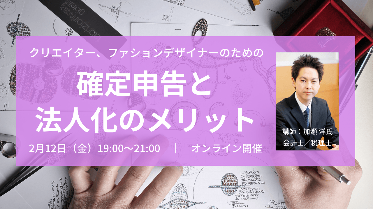 まもなくスタートする確定申告を前に、クリエイター、ファッションデザイナーが知っておくべき「経費にできるモノ・できないモノとは?」などの具体例を交え、公認会計士・税理士の加瀬洋氏が解説します。