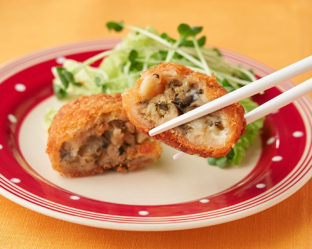 今回は、1個のカキフライの中に6~7個のカキをぎっしり詰め込みました。牡蠣をたくさん使っているため、大変食べ応えのある一品となっています。また、衣にもこだわり、生パン粉を使用しているためサクサクとした食感をお楽しみ頂けます。ご自宅では作るのに手間がかかりますが、油調処理までしているので、レンジで簡単に調理できます。チーズも中に入っていて、クリーミーで濃厚な仕上がりです。是非ボリューム満点のカキフライをお楽しみください。お好みでタルタルソース、ウスターソース、ポン酢などを付けてお召し上がりください。