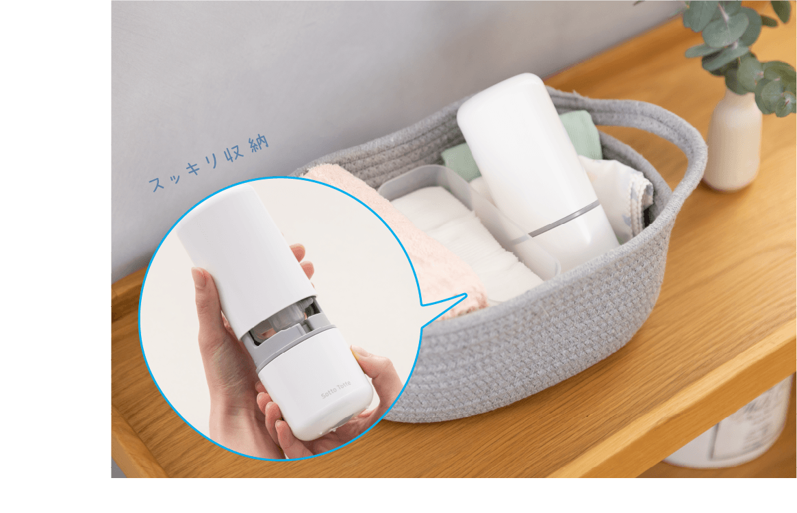 全ての部品が本体にスッキリ収納できるので、ほこりが付かず衛生的に保管できます。