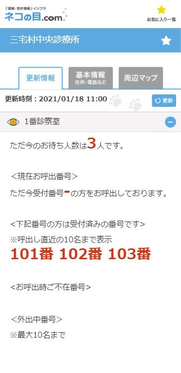 三宅村中央診療所では、患者様が安心してご来所いただく為の情報サービスとして、リプライス株式会社が提供する、「混雑・空き情報」配信システムを使い、受付の混雑状況をWebサイト上でリアルタイムに配信します。