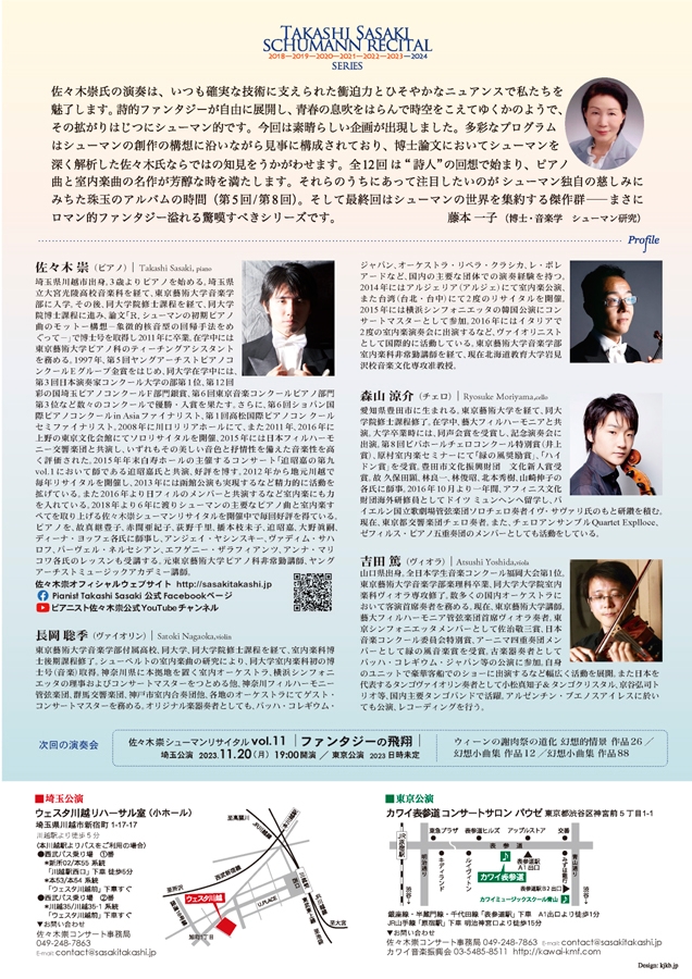 Musik Waldコンサート企画主催、佐々木崇シューマンリサイタルVol.10(全12回)『メールヒェンの情景』が埼玉、東京の二会場にて開催されます。