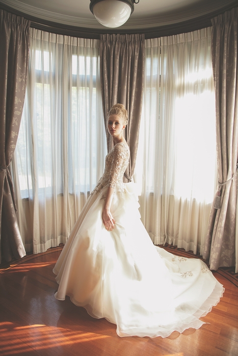 ウェディングフェアなどで、様々なタイプのドレスをみていましたが、やはりシルクなどで丁寧に仕立てられたドレスが放つ美しさは、醸し出す雰囲気が違います。