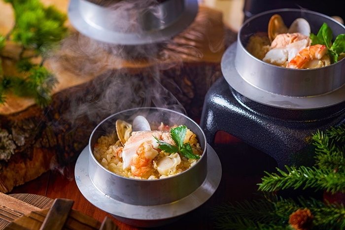 海鮮の旨みがつまった海鮮釜めしを、お席で炊きたて熱々をお楽しみいただけます。おこげも美味しい一品です。