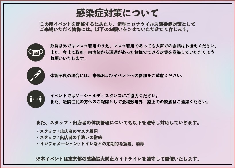 ・その他本イベントは東京都の感染拡大防止ガイドラインを遵守して開催いたします。