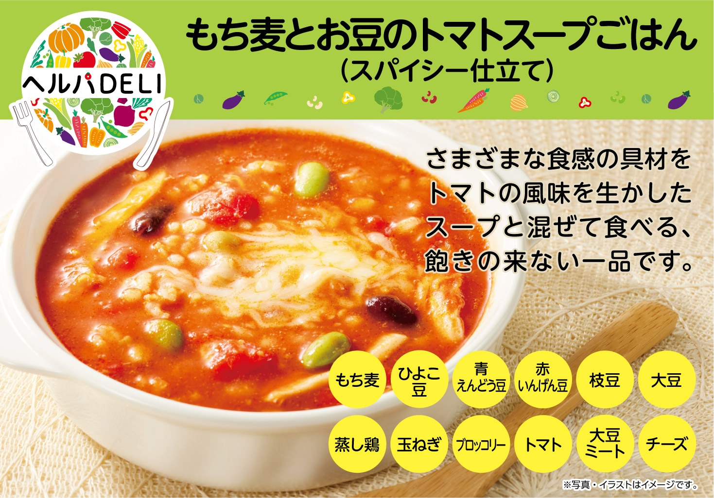 ① ヘルパDELI もち麦とお豆のトマトスープごはん