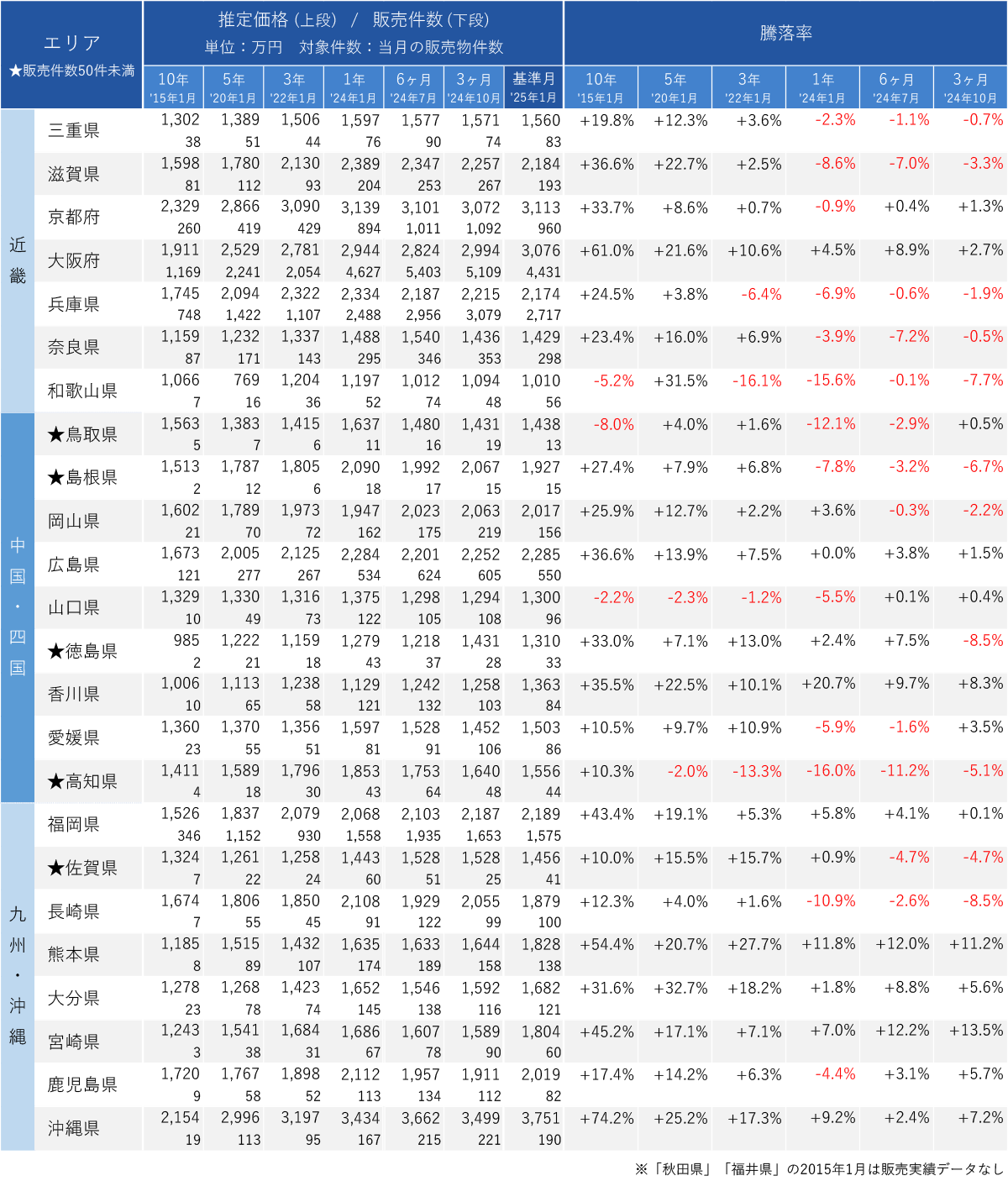 ※2025年1月の販売件数*2が50件未満の県は、算出根拠となるデータ数が少ないため下記対象から除外。