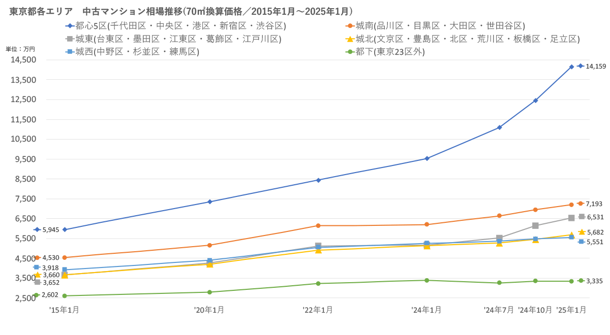首都圏主要エリア 中古マンション相場推移