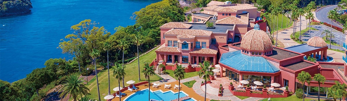 テラコッタカラーの建物、広々とした中庭、その中心のプールやフローティングラウンジ、そしてホテルを取り巻く西海橋の雄大な自然。異国情緒あふれる景色、空間が、一歩足を踏み入れた瞬間にリゾート気分を味わえる当宿には、県内のみならず、九州各県から多くのお客様に足を運んでいただいております。