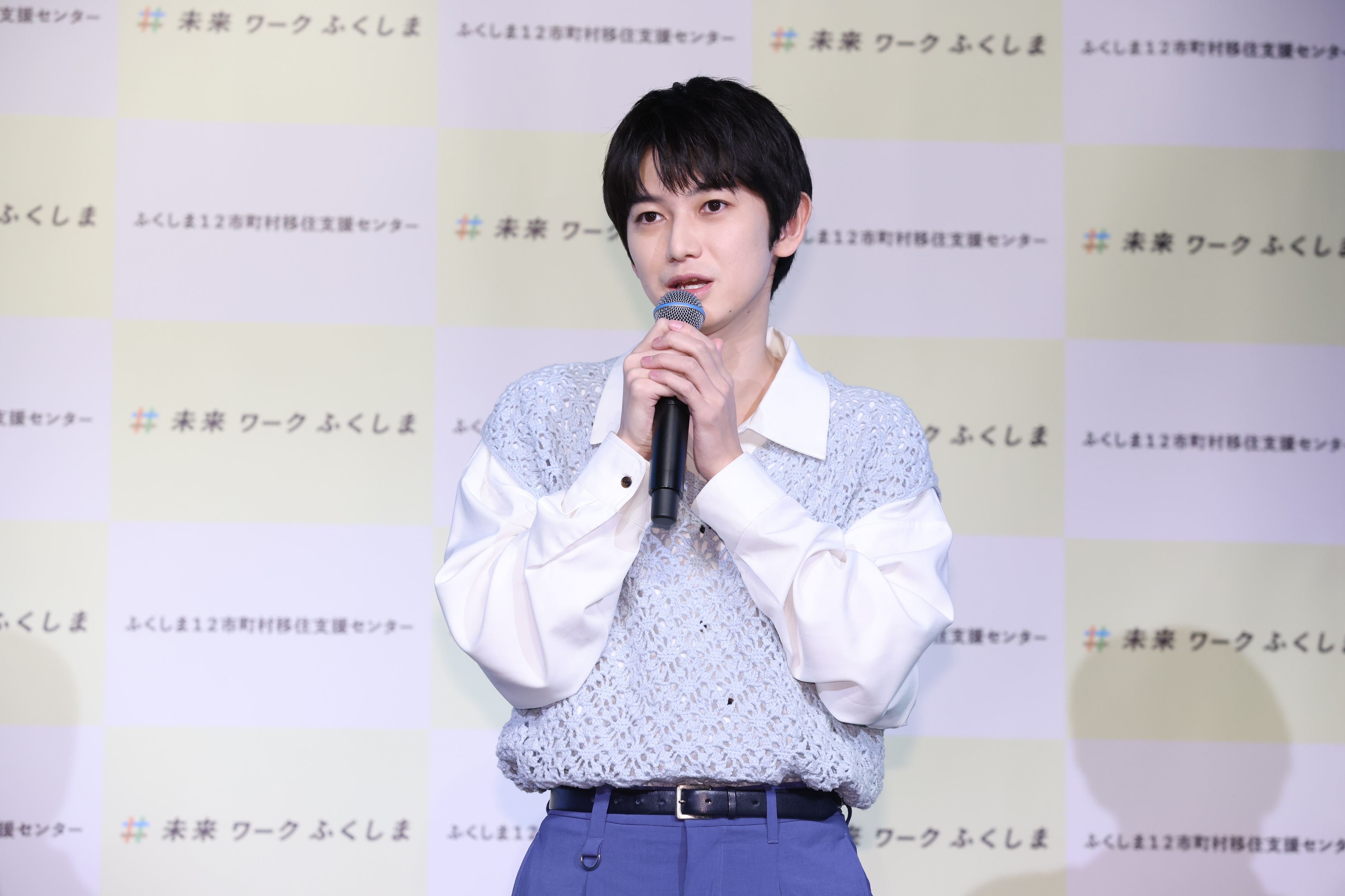 ドラマ『姪のメイ』の撮影地である福島12市町村にドラマ撮影を含め、度々訪れている本郷奏多さん。「移住というものを知り、すごく素敵なことだと思いました。今日は多くの方に移住の魅力を知って、新しい人生を考えるきっかけになってもらえたらと思っています」とナビゲーターを務めたことから移住促進への期待を語っていただきました。