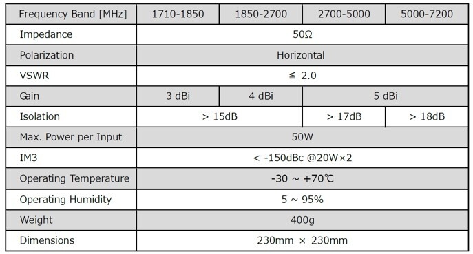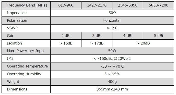 Consolidation of antennas for different frequency bands. Sharing of cellular networks among multiple providers, reducing the number of antennas and installation area, resulting in cost reduction.