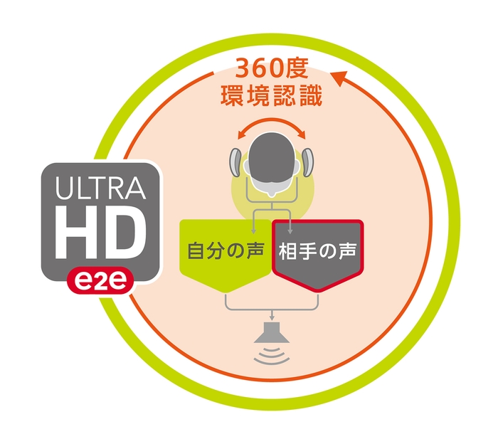 周囲の音環境を認識し、前方向の声や音にフォーカスをして会話をしっかり聞き取りやすくします。
