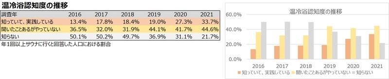 (一般社団法人 日本サウナ・温冷浴総合研究による「温冷浴認知度の推移」の調査結果)