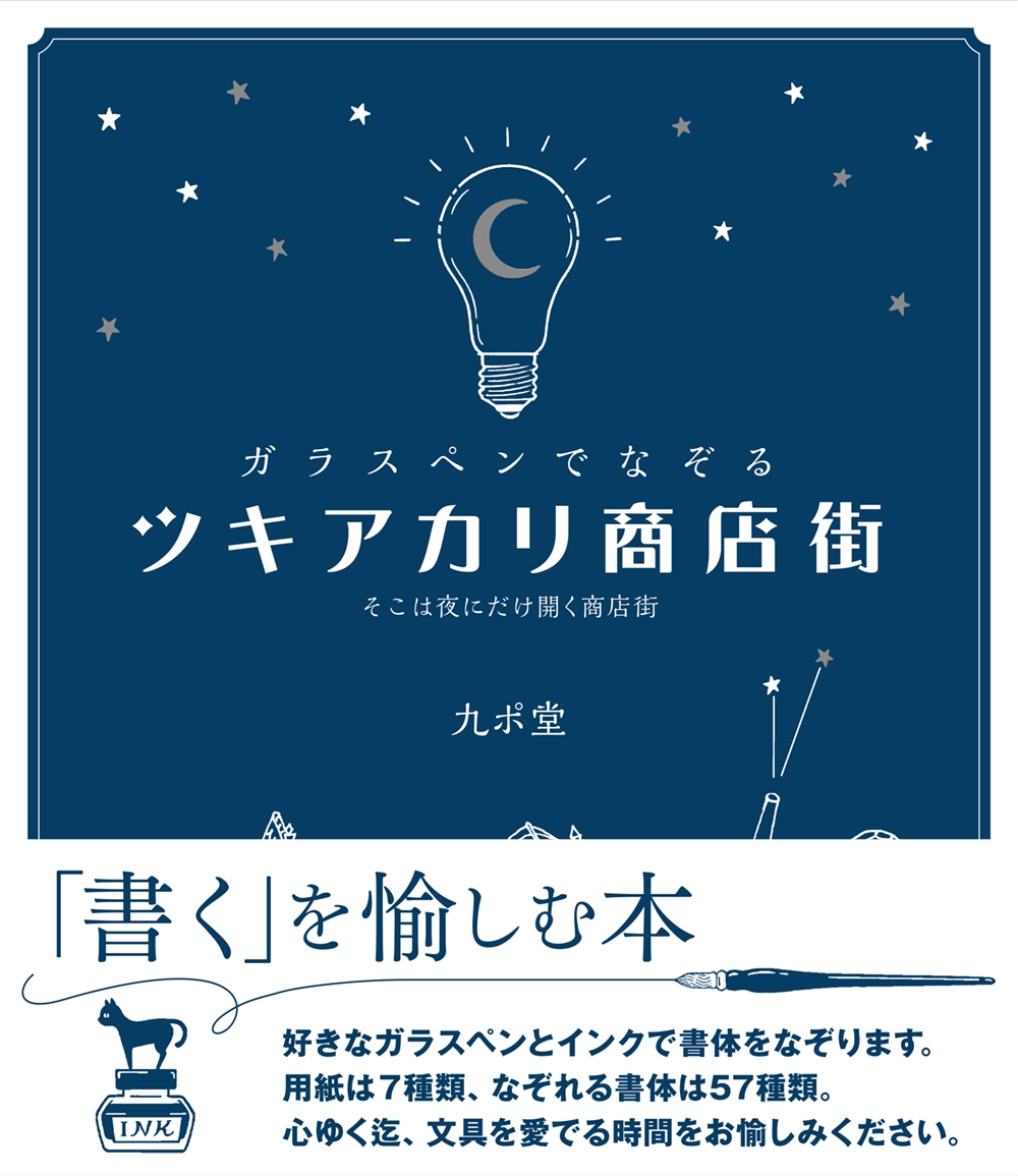 『ガラスペンでなぞる ツキアカリ商店街 そこは夜にだけ開く商店街』は、そんな「手書きしたい欲」「なぞりたい欲」を心行くまで満たす一冊です。