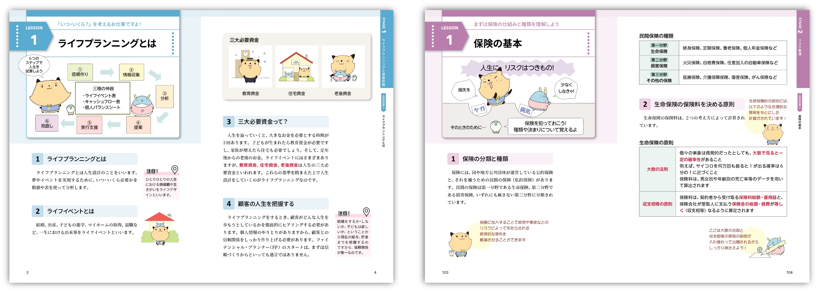 フルカラーの「マンガ1コマFPナビ」での各レッスンのイメージ付けからはじまり、図解を使ったわかりやすい解説、難しい分野をサポートする「特別講義」といった試験に必要な学習要素を飽きさせないための工夫が盛り込まれています。