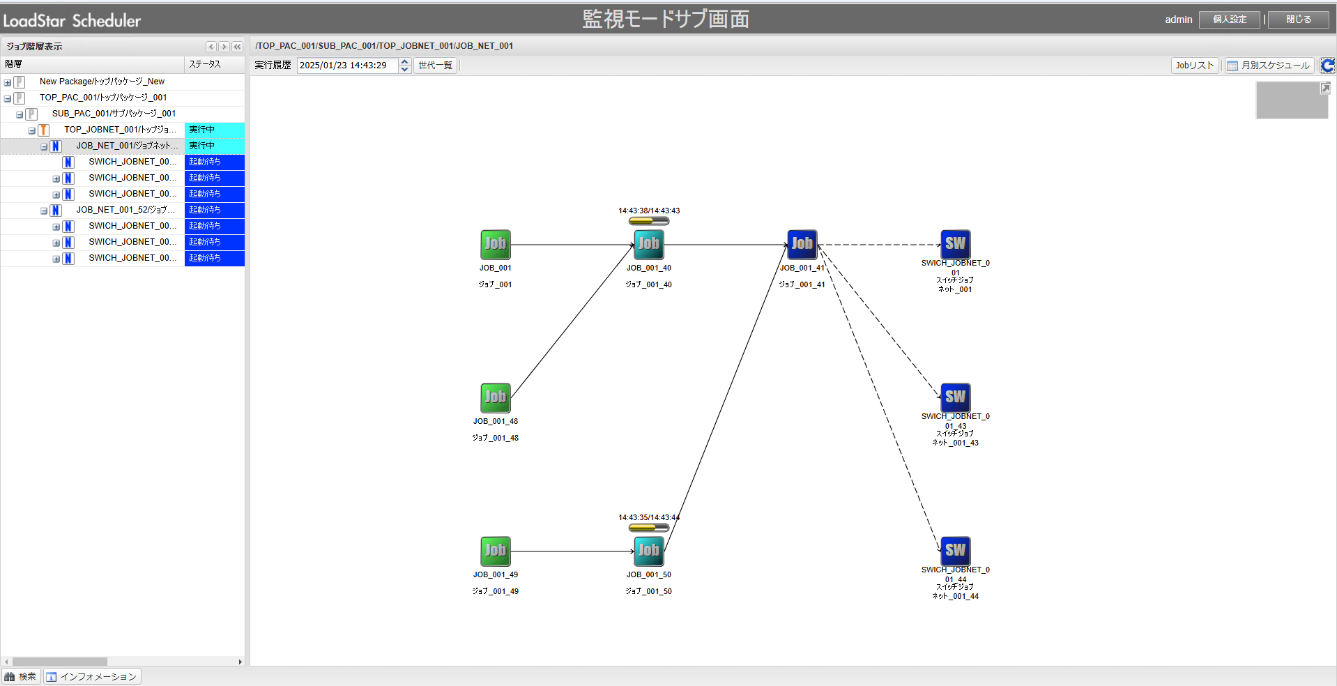 ジョブアイコンにジョブの開始時間や終了予測時間が表示されるため、ジョブのスケジュール把握をリアルタイムに行うことができます。