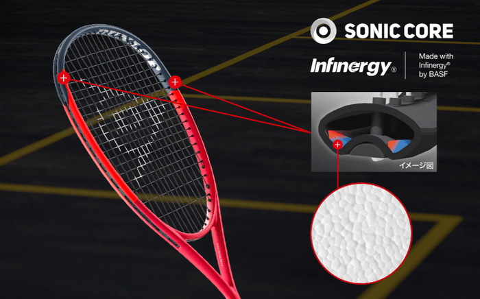 1.テニスラケットの基幹テクノロジー「SONIC CORE TECHNOLOGY(ソニックコアテクノロジー)」搭載で安定した打感を実現