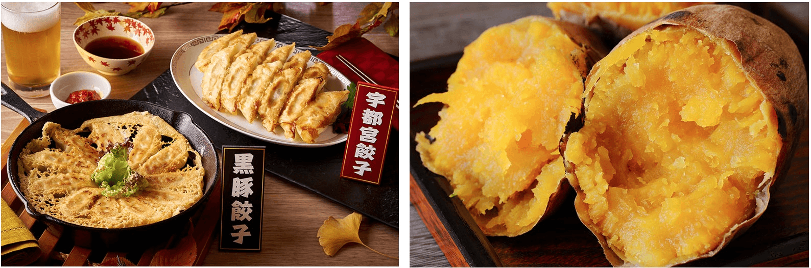 左:定番の「宇都宮餃子」に加えて、期間中は「黒豚餃子」も登場します。定番の美味しさと鉄鍋で提供される期間限定の美味しさをの食べ比べをお楽しみください。