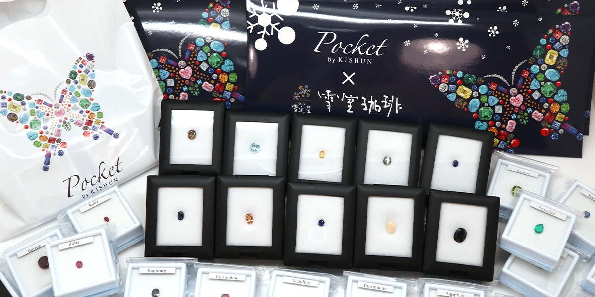 Pocket by KISHUN×雪室珈琲!!|ジュエリーメーカー『貴瞬(KISHUN)』が『Pocket by KISHUN』ブランド発足記念のクラウドファンディングを実施。お土産品で話題の新潟・雪室珈琲との異業種コラボで再研磨宝石とサステナブルジュエリーのブランド認知向上を図る。