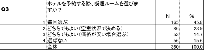価格や清潔感、そして喫煙ルームの空き状況が、喫煙者の客室選択に影響を与えていることが共通して見て取れます。