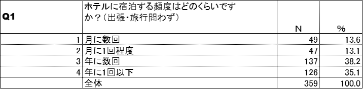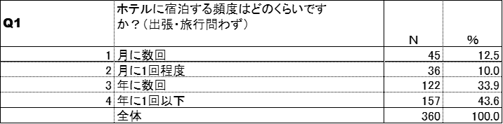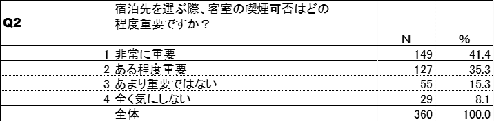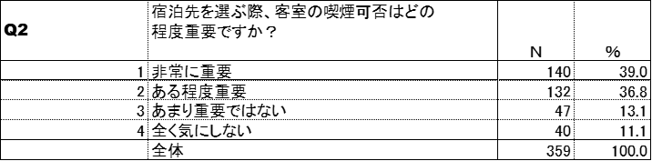 - ホテル利用頻度と客室の喫煙可否の重要性について聞いたところ、以下の結果となりました。