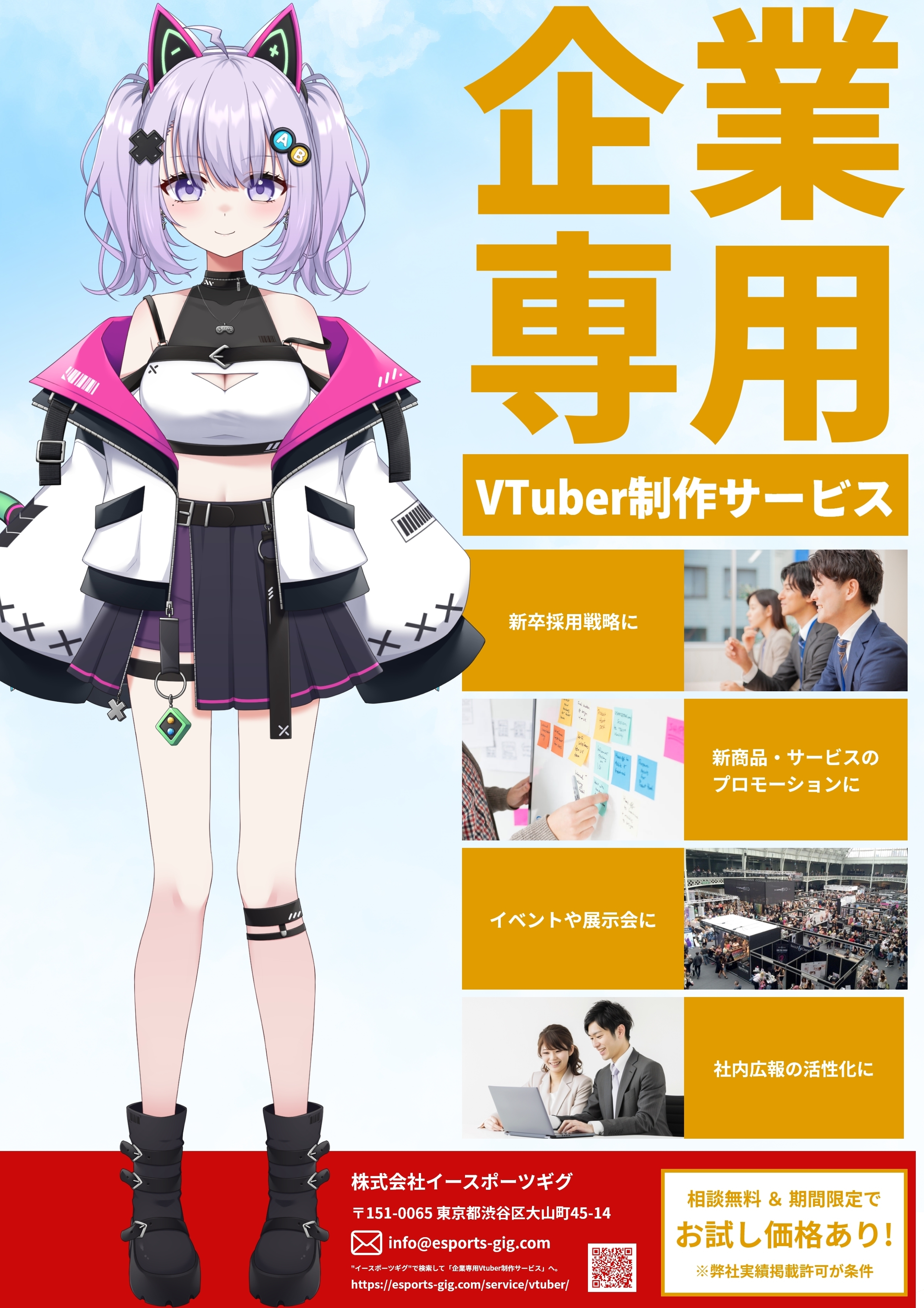 企業向けのデジタルマーケティングおよびeスポーツ事業を手がける株式会社イースポーツギグ(本社:東京都、代表取締役社長:松永 恵弥)は、企業や地方自治体向けのVTuberモデル制作サービスを2025年2月14日に開始しました。本サービスでは、企業のブランドイメージに合わせたオリジナルVTuberを制作し、新しい顧客層へのアプローチを支援します。